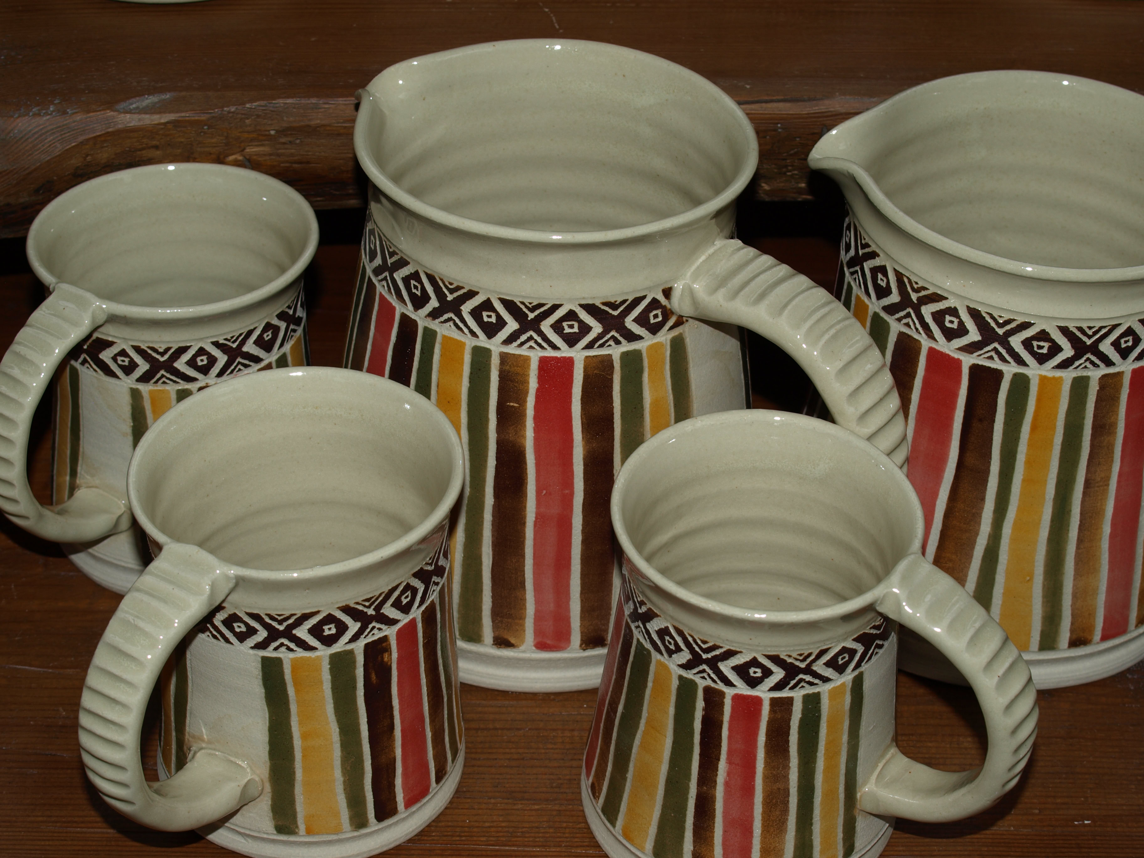 1. Triibulised ja vöökirjalised, kruusid u 400- 500ml 15-16€,
