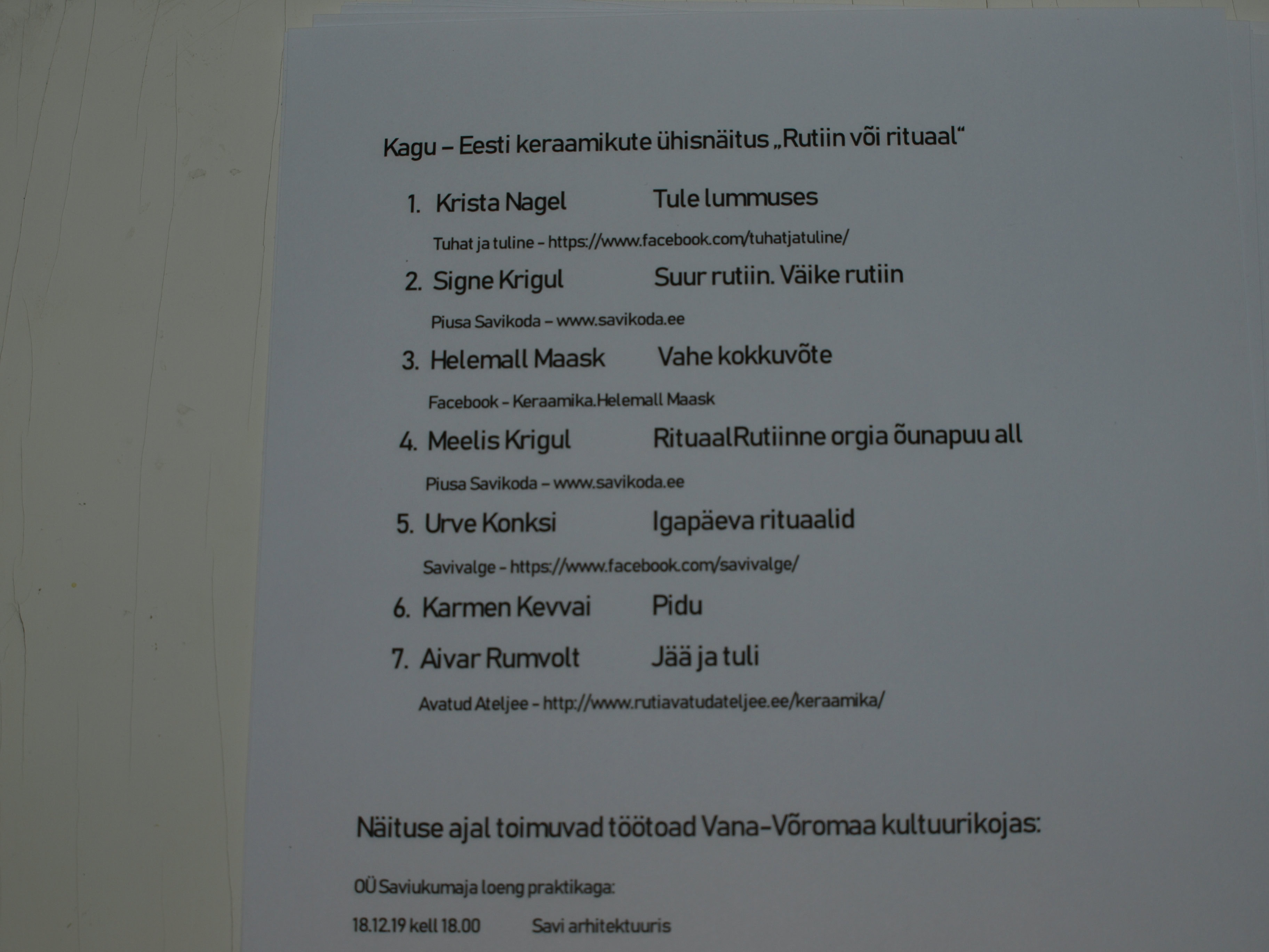 Näitus ”Rutiin või rituaal” Vana-Võrumaa Kultuurikojas, november 2019